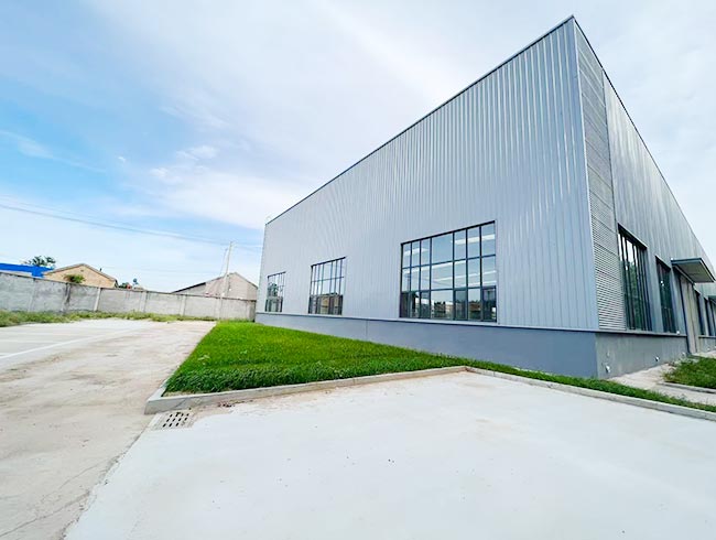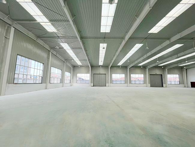 院内共3个厂房,分开建设可灵活使用,合计面积8300平米(含办公)钢结构檐柱高8米,办公楼钢混结构。
